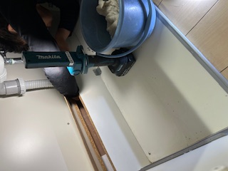 配管がつまりキッチンから水漏れがして、床下をのぞくと水が
