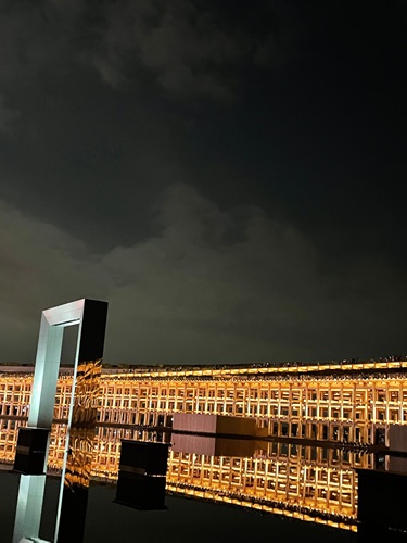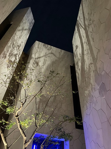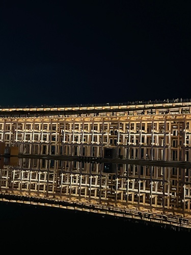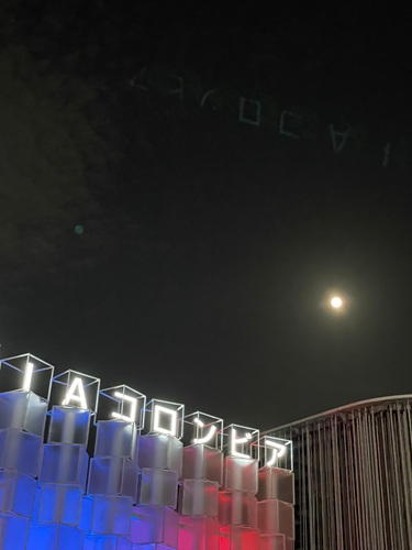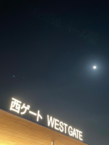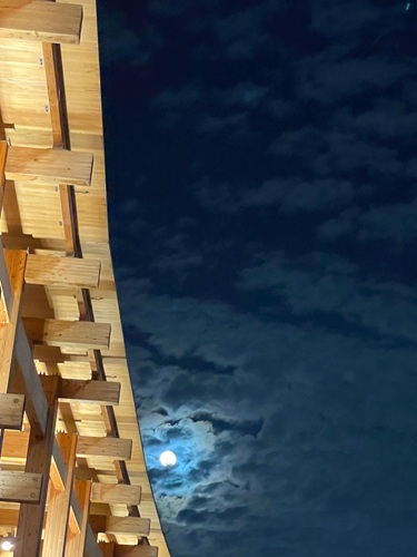 夜空を見上げた大屋根リングと満月はどちらもとても綺麗でした。