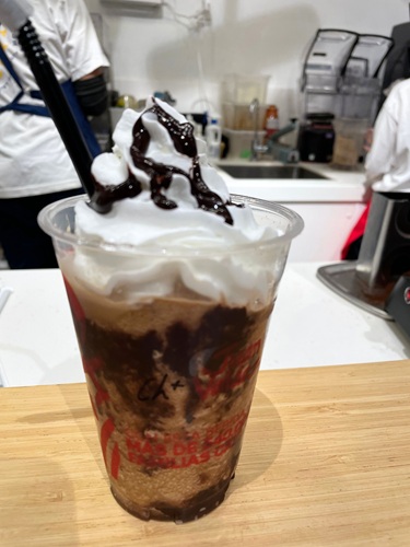 アイスコーヒーを頼む気満々だったんですが、この日はあまりにも残暑が厳しくて、無風で、人が多くて、疲労が凄かったので注文時に気づいたら口が勝手に看板を差しながら「あのクリームいっぱい乗ってるやつ下さい!」と言っていました。