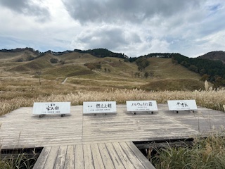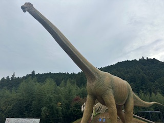 片道約3時間のツーリング途中に恐竜に出会い、砥峰高原でススキ道の散歩からの高原ランチ