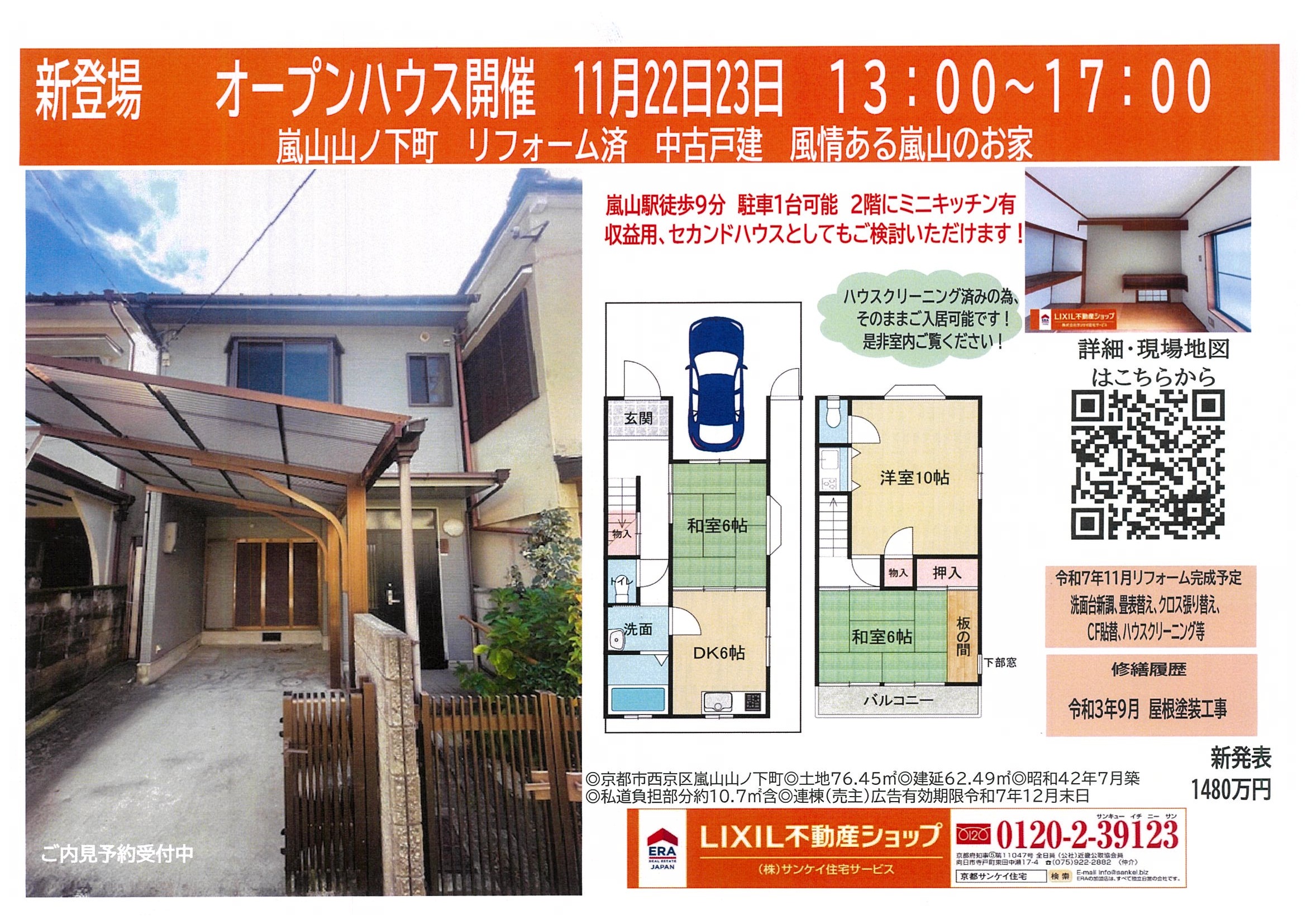 オープンハウスを致しますので、嵐山エリアでおうちを