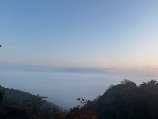 ゴルフ場の手前に人が多くいるので何かと思えば、雲海スポットでした!!